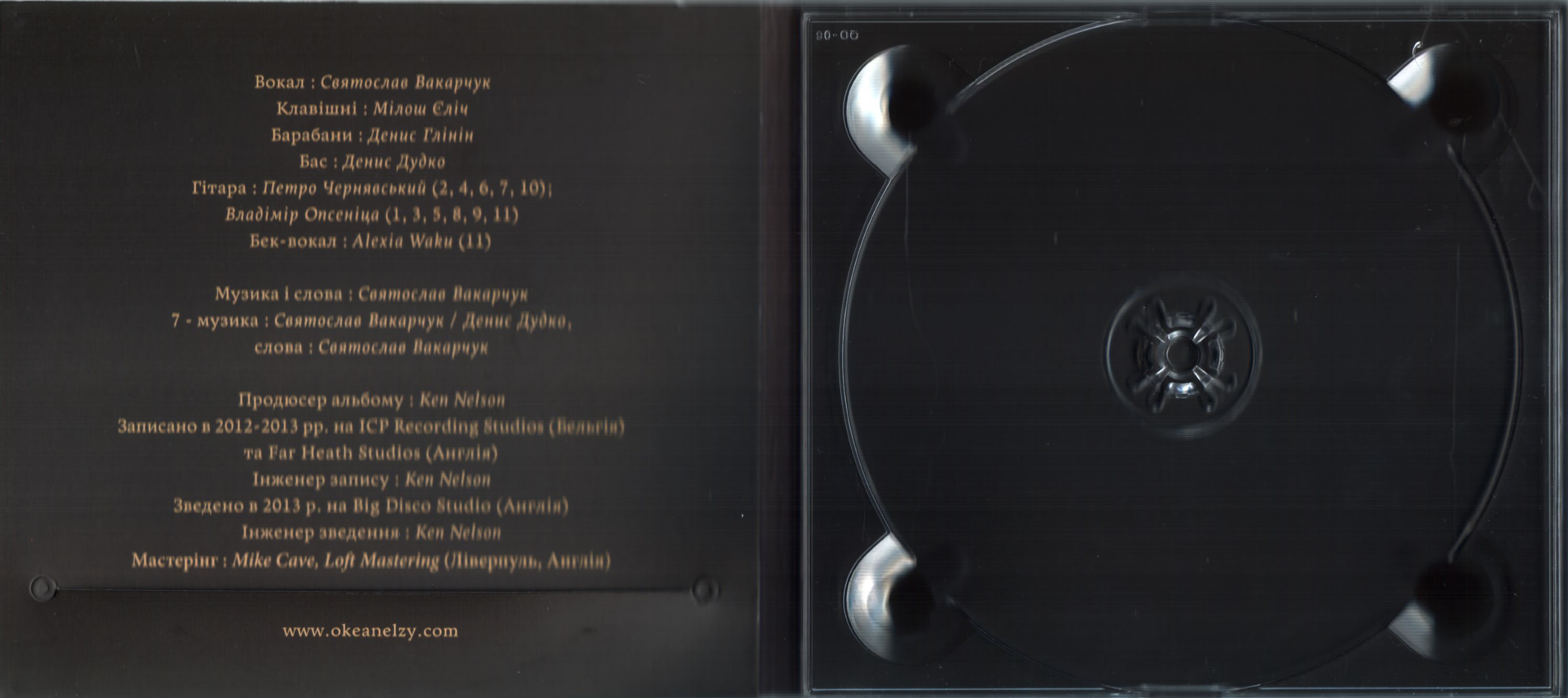 Океан ЕльзиПолный список песен Разные песни Будинок зi скла (1997) Там, де нас нема (1998) Янанебiбув (2000) Модель (2001) Суперсиметрiя (2003) Gloria (2005) Мiрa (2007) Dolce Vita (2010) Земля (2013) Без меж (2016) Святослав Вакарчук Вночі (2008) Брюссель (2011) Оранжерея (2021) |