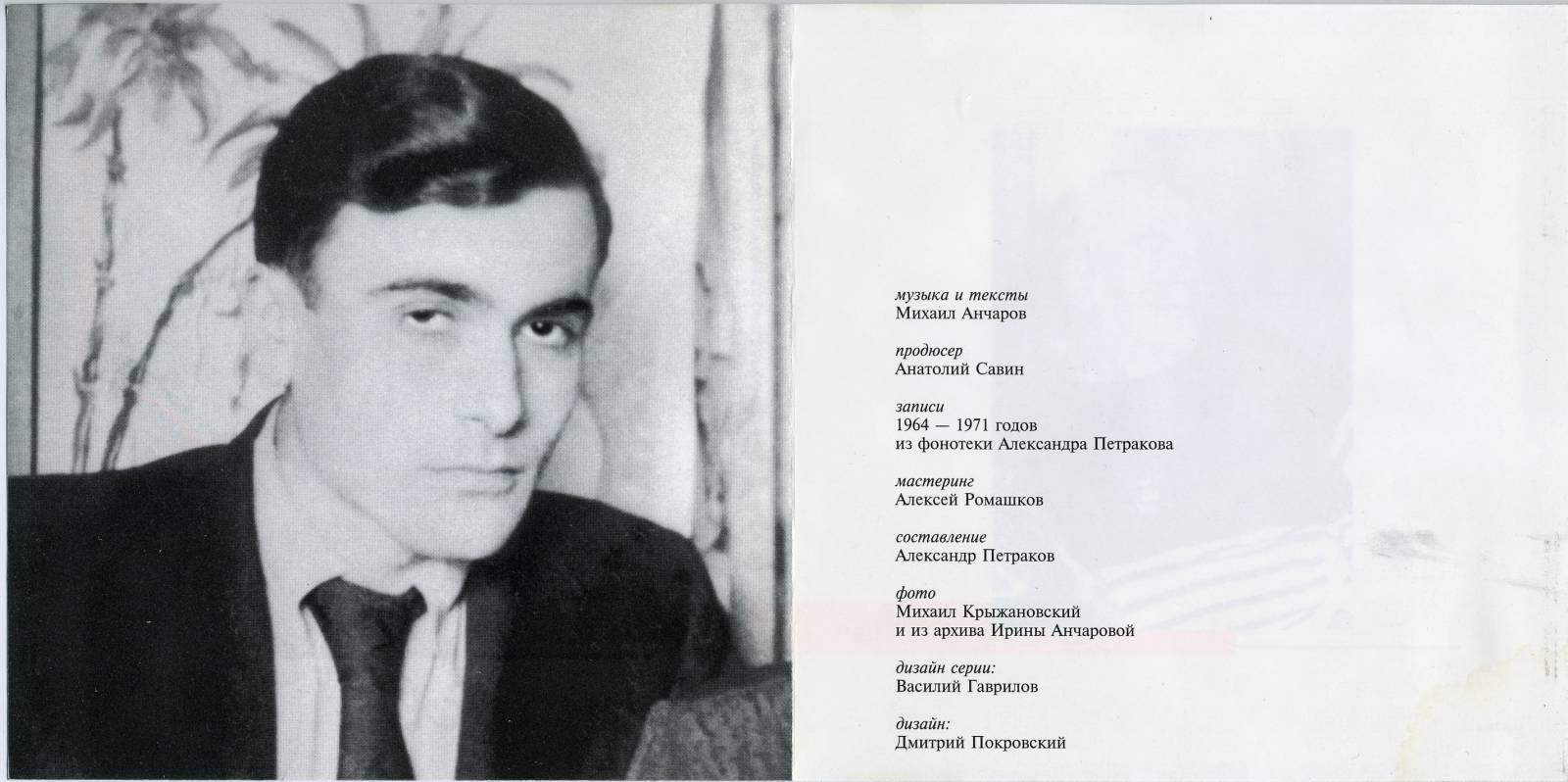 Михаил АнчаровПолный список песен Разные песни На краю городском... На холодном ветру... (1989) Лучшие песни (2000) Российские барды (2000) Песни Михаила Анчарова (2007) |