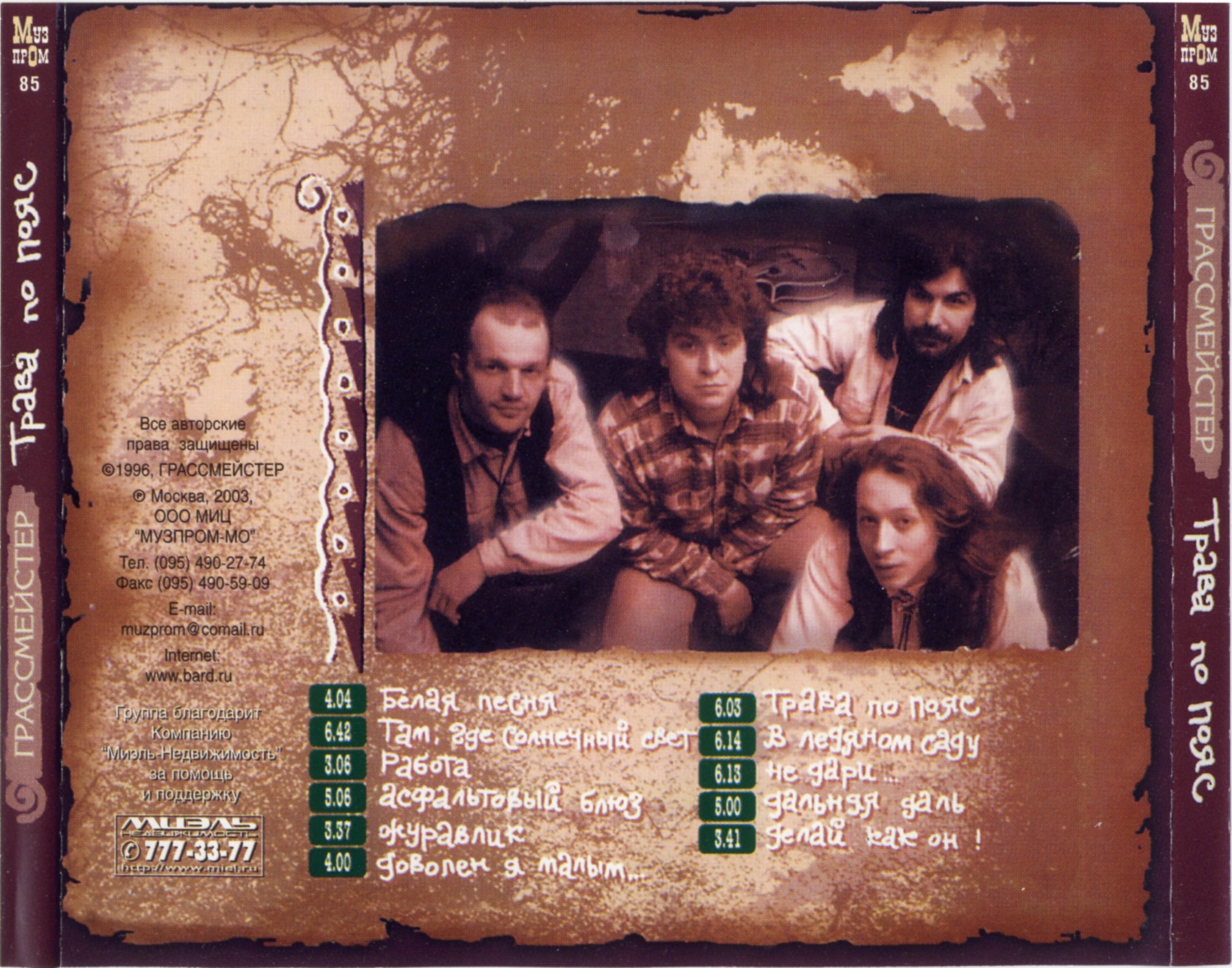 ГрассмейстерПолный список песен Трава по пояс (1996) Живая коллекция (1998) Время цветов (2001) Деревянный рокенрол (2002) Лучшие партии (2004) Повод, чтоб всё началось (2008) |