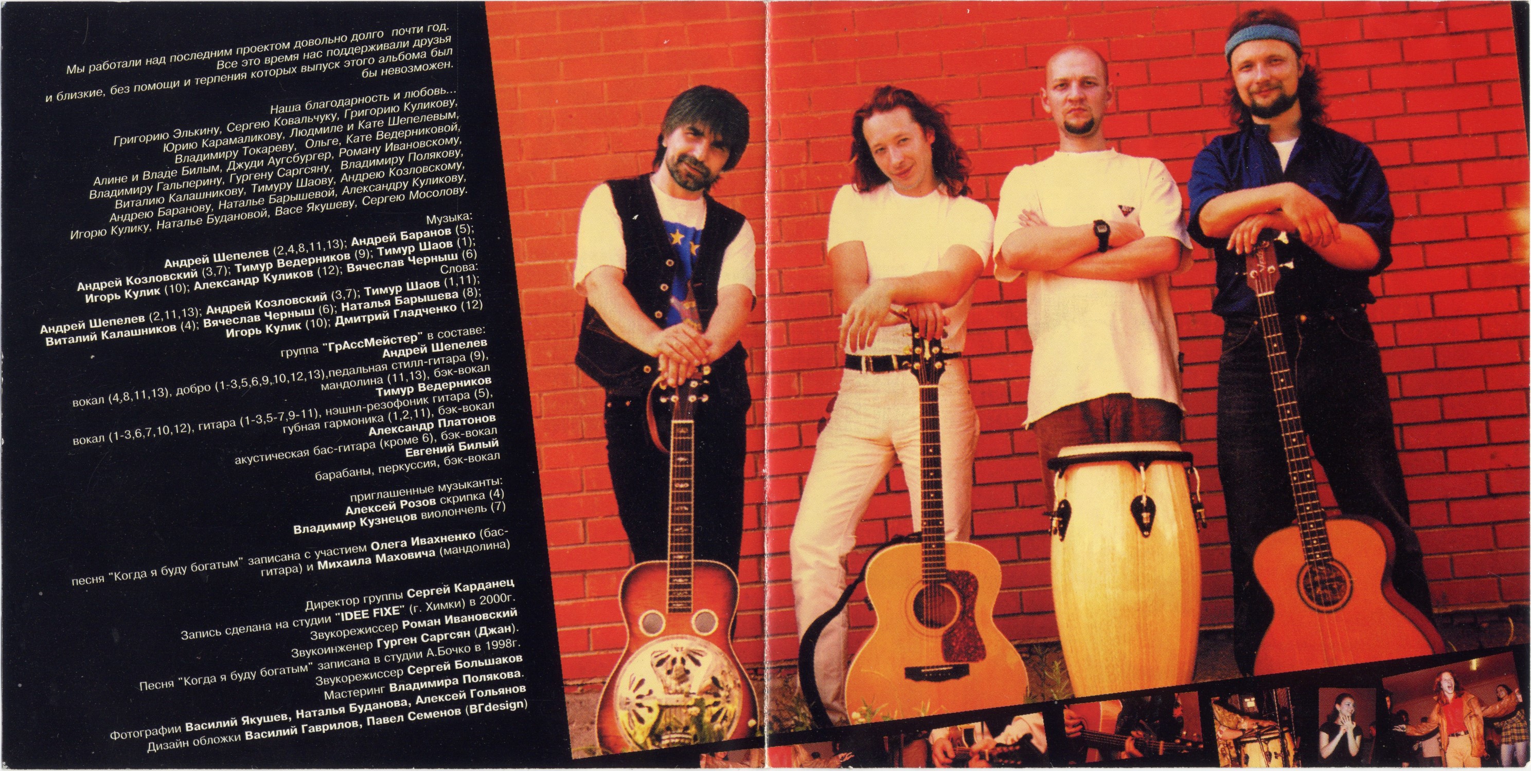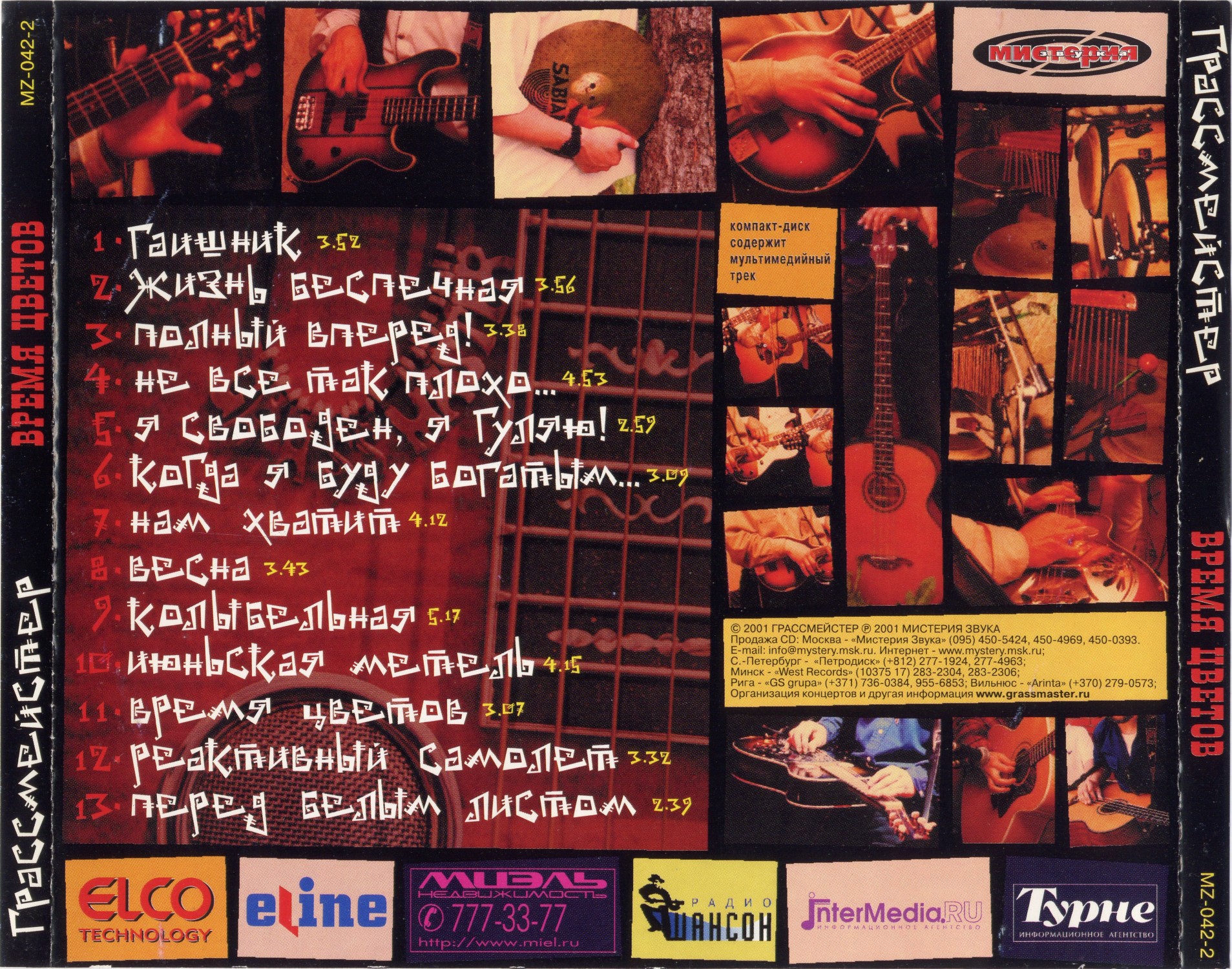 ГрассмейстерПолный список песен Трава по пояс (1996) Живая коллекция (1998) Время цветов (2001) Деревянный рокенрол (2002) Лучшие партии (2004) Повод, чтоб всё началось (2008) |